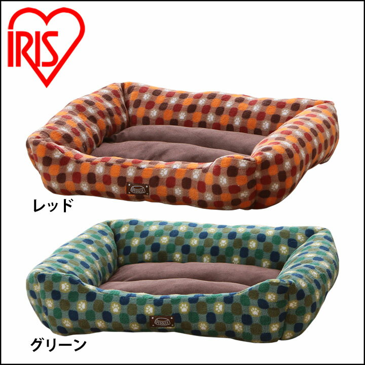 ソファベッド 角型 Mサイズ PSKJ530 レッド グリーン ペットベッド ベッド ペット 犬 イヌ いぬ 猫 ネコ ねこ あったか 秋冬 冬用 ペット用 犬用 猫用 手洗い 洗濯 かわいい 可愛い 肉球 足あと スクエア 小型犬 アイリスオーヤマ